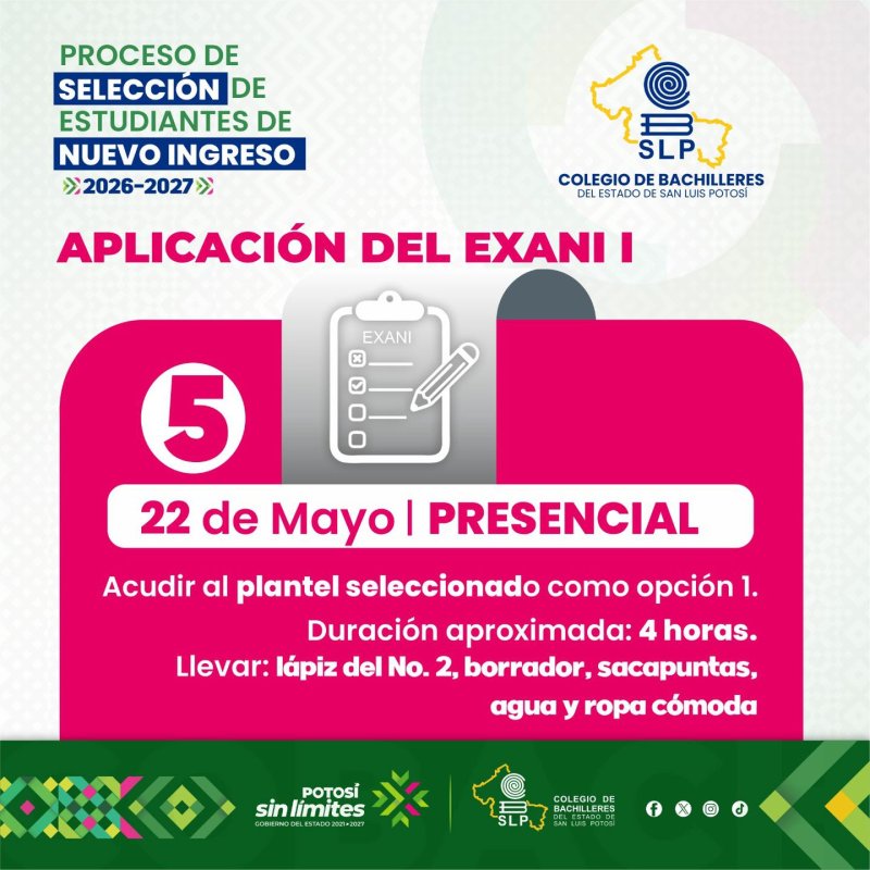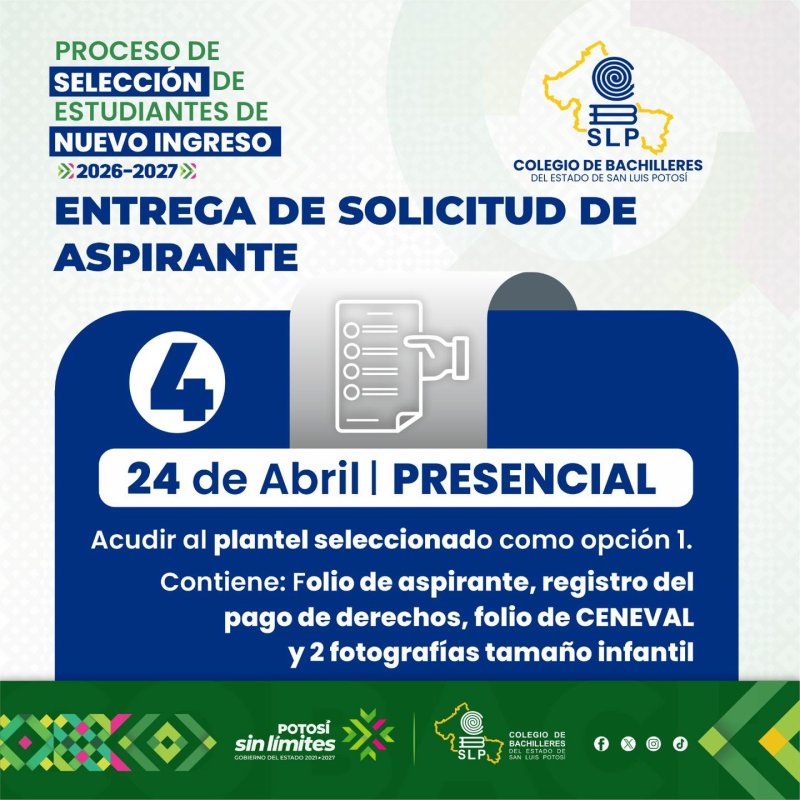 Estamos en proceso de Admisión 2026 del Colegio de Bachilleres del Estado de San Luis Potosí.Ya tenemos la plataforma abierta para el registro de aspirantes.